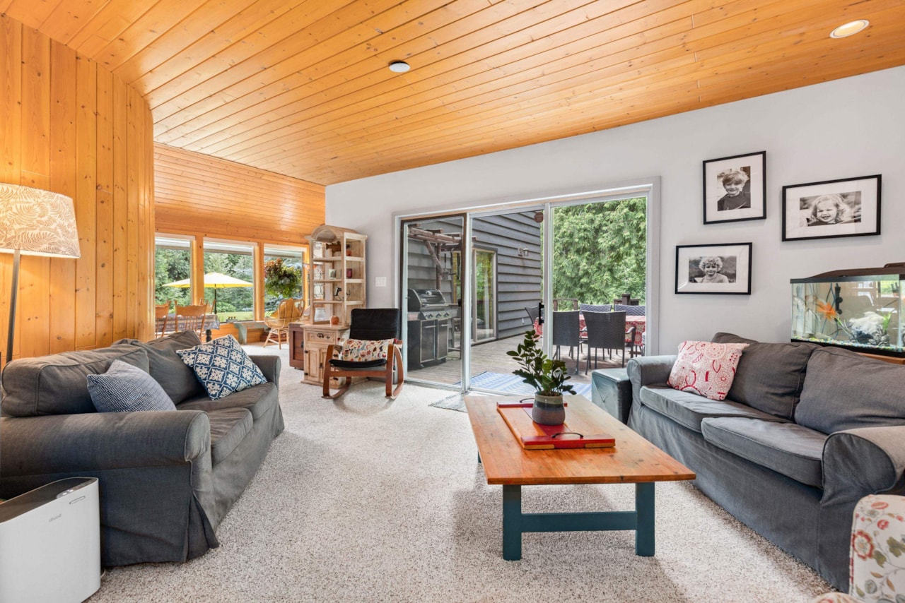 $3,598,000- Remarks: This stunning property offers 4.56 acres of tranquility, nestled on the border of crown land and Ryan Creek. The landscape is adorned with majestic cedar trees, creating a serene atmosphere. Step onto this expansive estate and find a spacious three-bedroom main home flooded with natural light. The layout is thoughtfully designed for relaxation and entertainment. The main living areas flow together seamlessly, providing a comfortable space for everyday living. With a large, multipurpose room and a separate two-bedroom plus loft guest cabin, this property offers endless possibilities. Outdoor enthusiasts will love the easy access to crown land and Ryan Creek, while still being conveniently located just 10 minutes from town. Don’t miss out on this perfect retreat property.